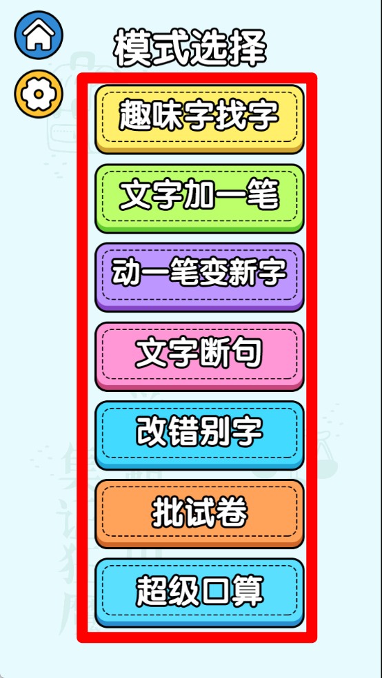 1.多模式选择界面丰富多彩,包括趣味找字、文字加一笔、动一笔变新字等玩法,满足不同玩家的需求,让体验更加多样化。