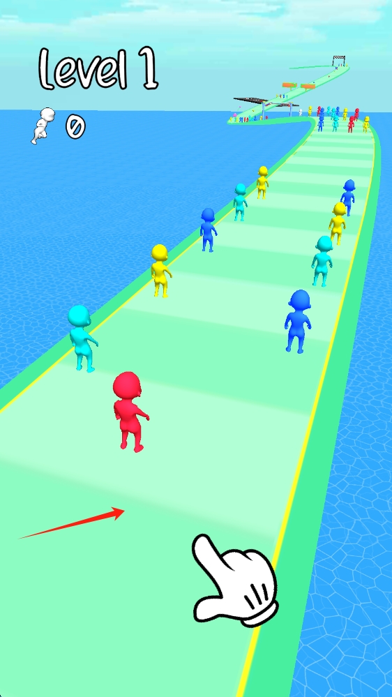 1、在游戏第一关启动界面,跟随箭头提示,进行相应操作,开启跑酷冒险,滑动开始游戏。