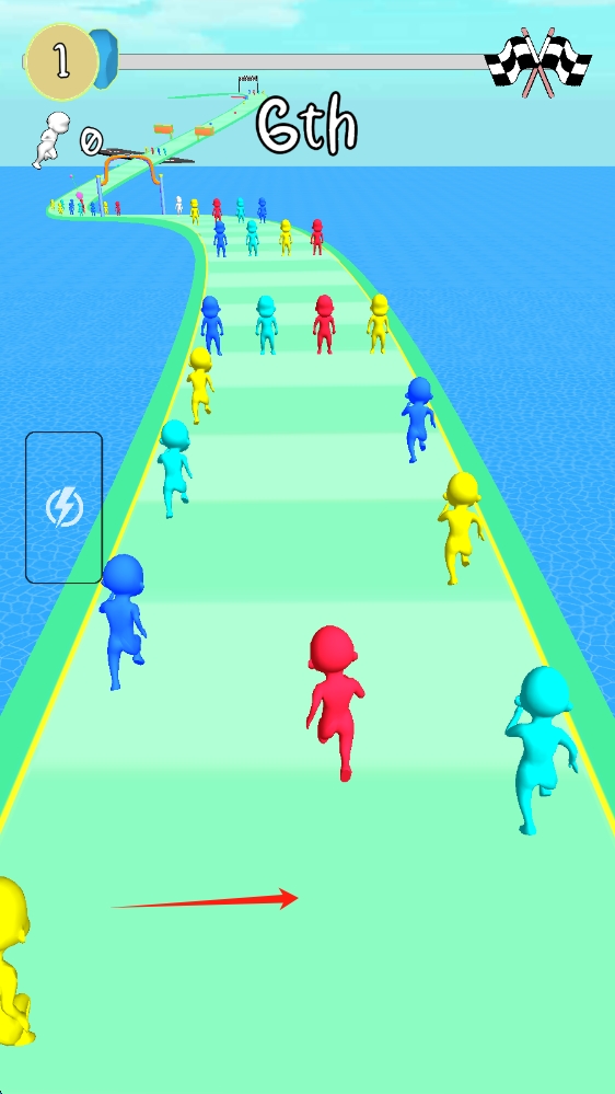 2、进入跑酷场景,根据箭头提示,滑动屏幕,控制角色移动,躲避障碍,收集道具,滑动移动人物。