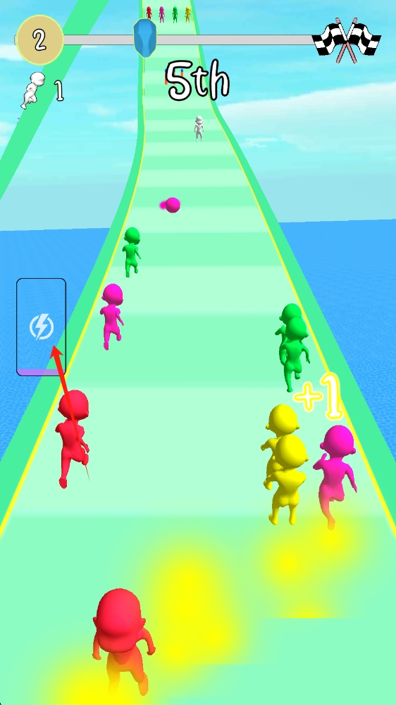3、在跑酷场景中,根据箭头提示,点击技能按钮,使用技能,提升跑酷速度,点击使用技能。