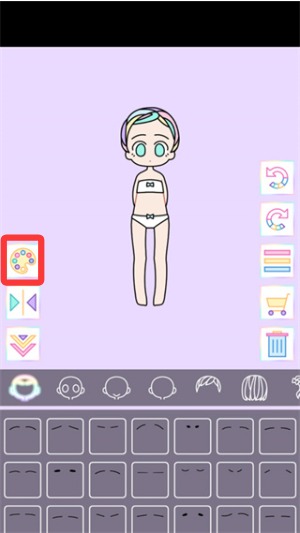 2、开始游戏后,调色盘中可以选择小女孩的肤色。