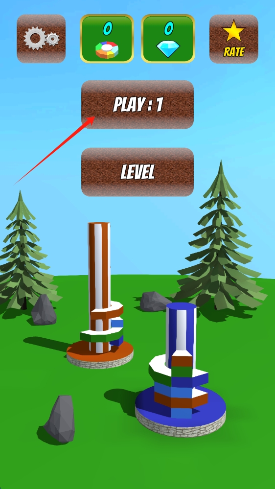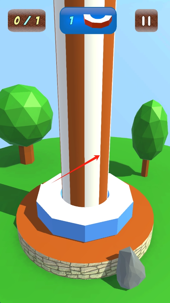 2、进入游戏操作场景,根据箭头提示,进行相应操作,完成游戏任务,提升游戏体验,滑动旋转柱子。