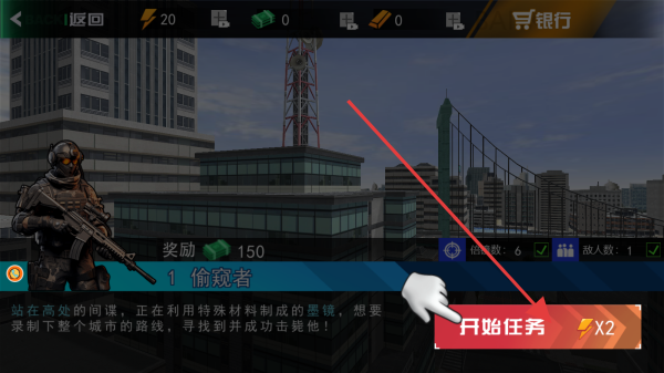 1、开启射击挑战:快速进入射击挑战任务,拿起武器瞄准对手射击,精准命中减少敌人数量,完成任务获取奖励,为后续战役与装备升级积累资源。