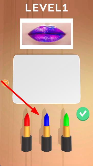 1、在第一关关卡中,我们将观察上方目标唇色,选择对应口红,点击它为化妆做准备。