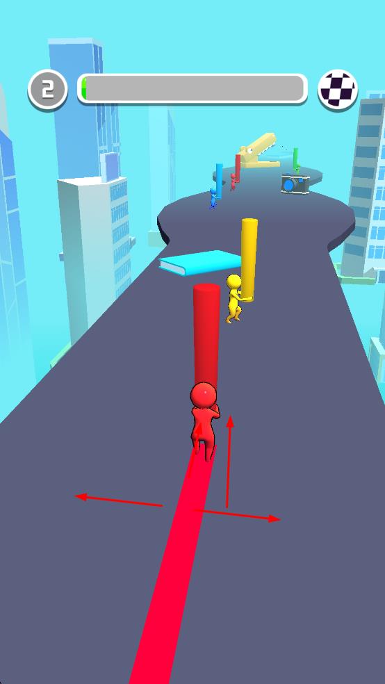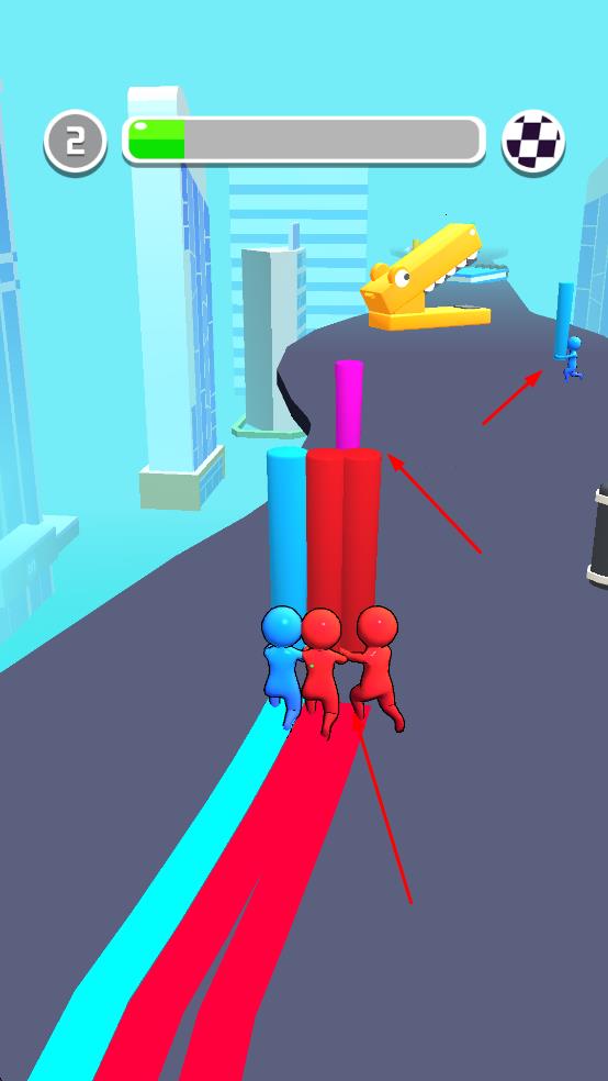 1、操控对应颜色的小人在赛道上移动,收集与自己颜色相同的柱子,这是开启游戏的关键操作,顺利开启游戏之旅。