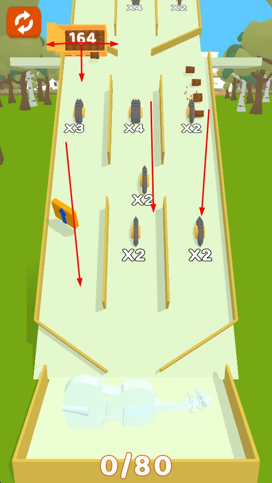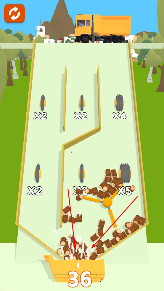 2、滚轮经过木材时会根据X倍数收集木材,同时注意轨道上的箭头标识,规划移动路线,为完成收集目标奠定基础。