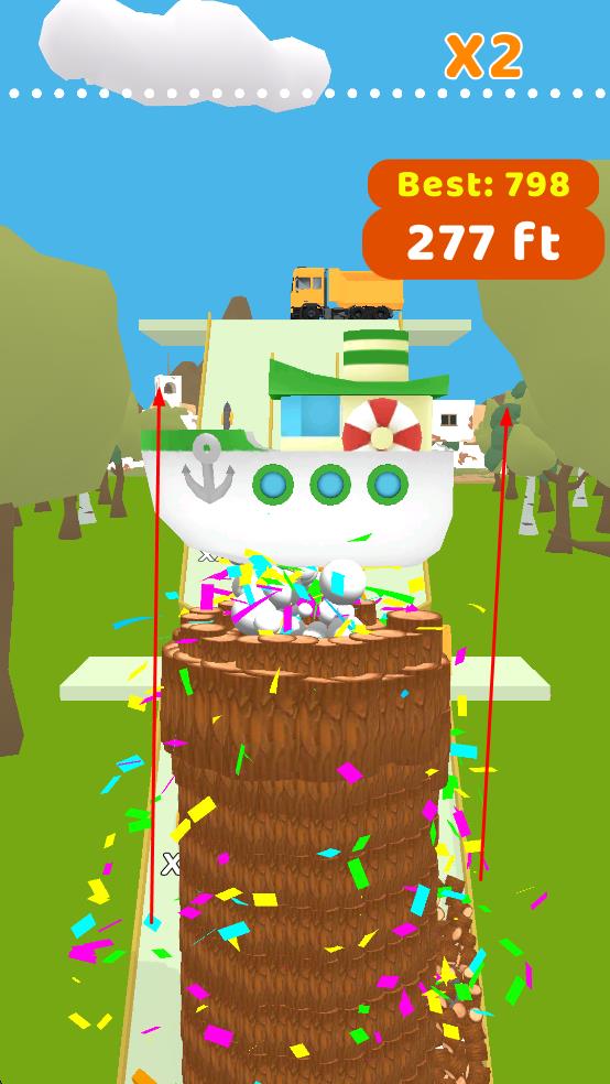 2、控制掉落精准切割:需控制木头掉落方向,确保将木材全部切成小块,精准的操作要求提升了游戏的挑战性,玩家在调整方向的过程中锻炼反应与手眼协调能力。