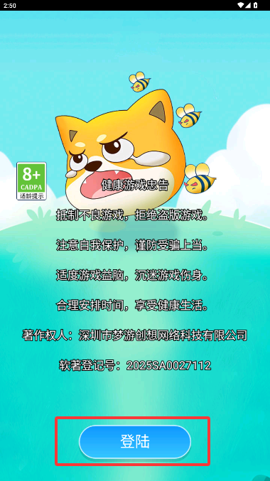 1、下载安装好游戏后打开,点击登录进行游玩。