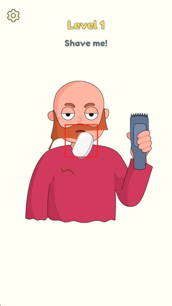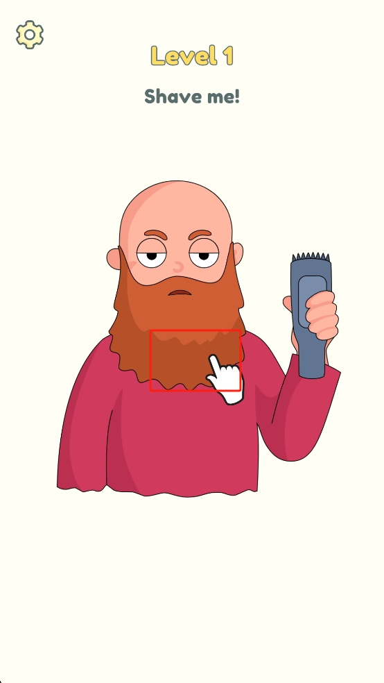 1、观察角色手持剃须刀,依照指引将剃须刀移至红色框选的棕色胡须区域,通过滑动或点击动作开展剃须操作。