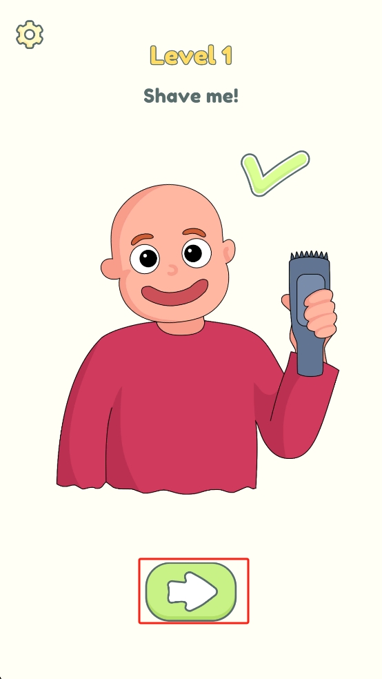 3、待角色胡须完全剃净,点击界面下方绿色箭头按钮,即可结束本关卡,顺利进入下一个关卡。