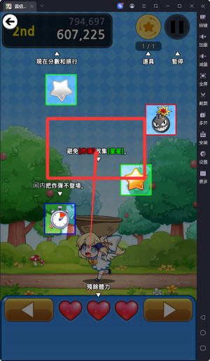 2、游戏过程中必须特别注意避开炸弹,一旦误接炸弹就会引发爆炸并扣除已获得的分数,需要时刻保持警惕。