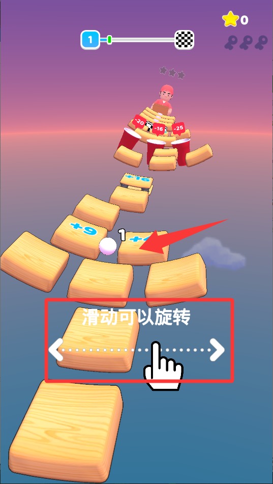 1、游戏开始后左右滑动屏幕控制悬浮平台,精准接住从上方掉落的小球,每次成功接球都能获得积分加成。