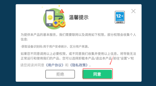 1、首次启动需阅读并确认用户协议,完成验证后即可进入游戏主界面。