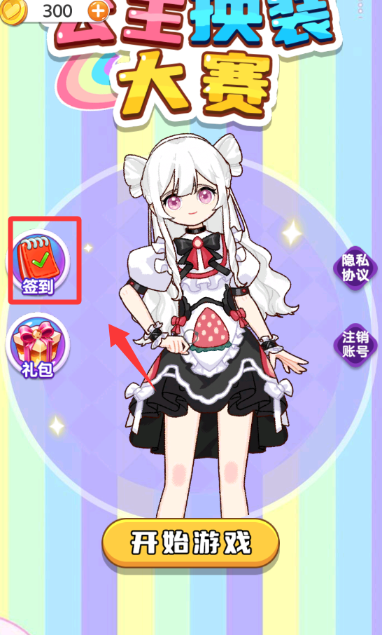 1、进入游戏首先点击签到,每天签到都会有奖励。