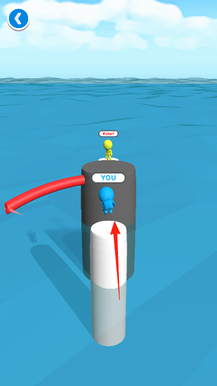 1、操控蓝色小人YOU,观察红色管道箭头指向,靠近管道,准备互动。