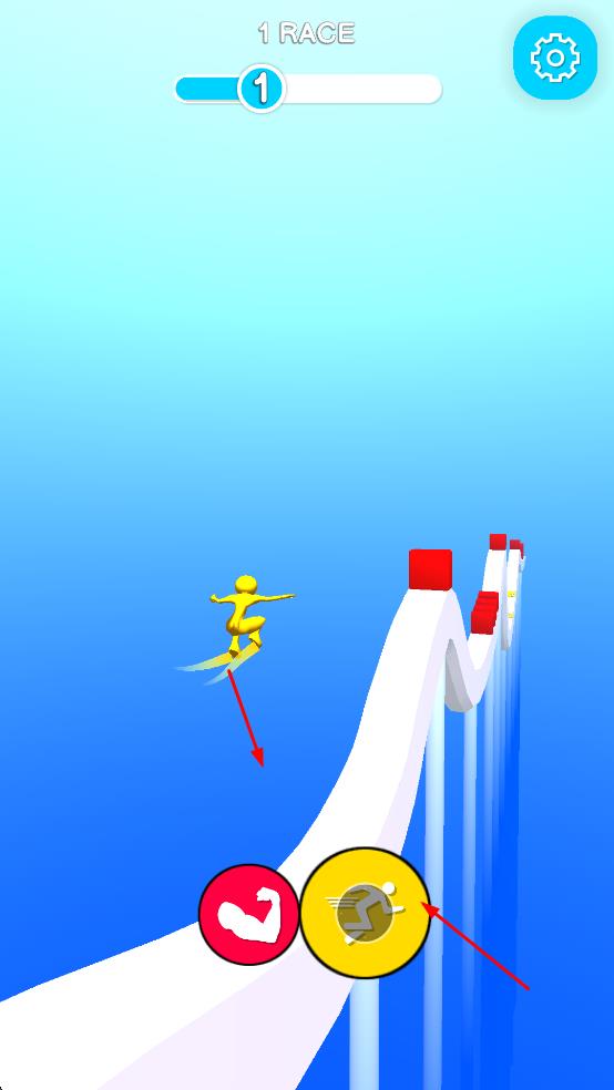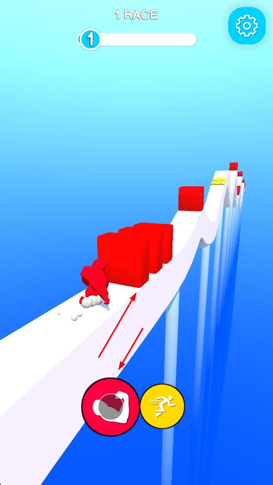 1、操控肌肉人冲刺:通过虚拟按键或滑动屏幕操控肌肉人前进,利用强健的肌肉力量撞开部分障碍物,同时躲避无法突破的陷阱,在复杂的关卡地形中快速冲刺,朝着终点前进。