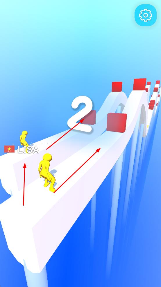 3、随着关卡推进,会出现其他角色,继续操控角色躲避障碍物,向关卡终点前进,争取获得更高名次。