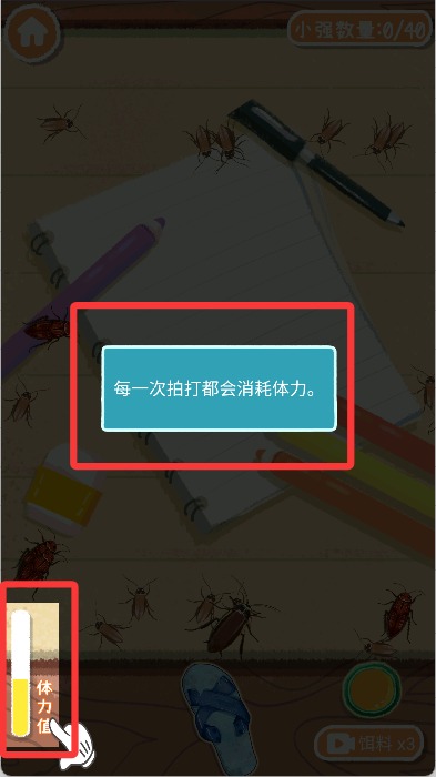 4、每一次拍打都会消耗体力值,体力显示在左下角。