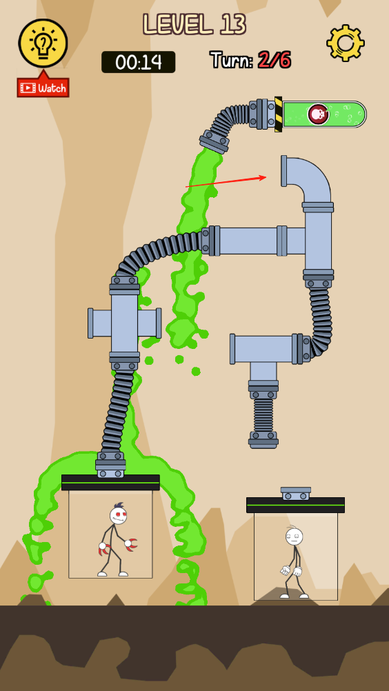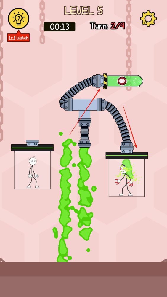 3、即时反馈机制:毒液流动过程实时呈现,管道调整后能立即看到效果,让玩家快速判断路径是否合理,通过试错优化策略,增强解谜的互动感与成就感。