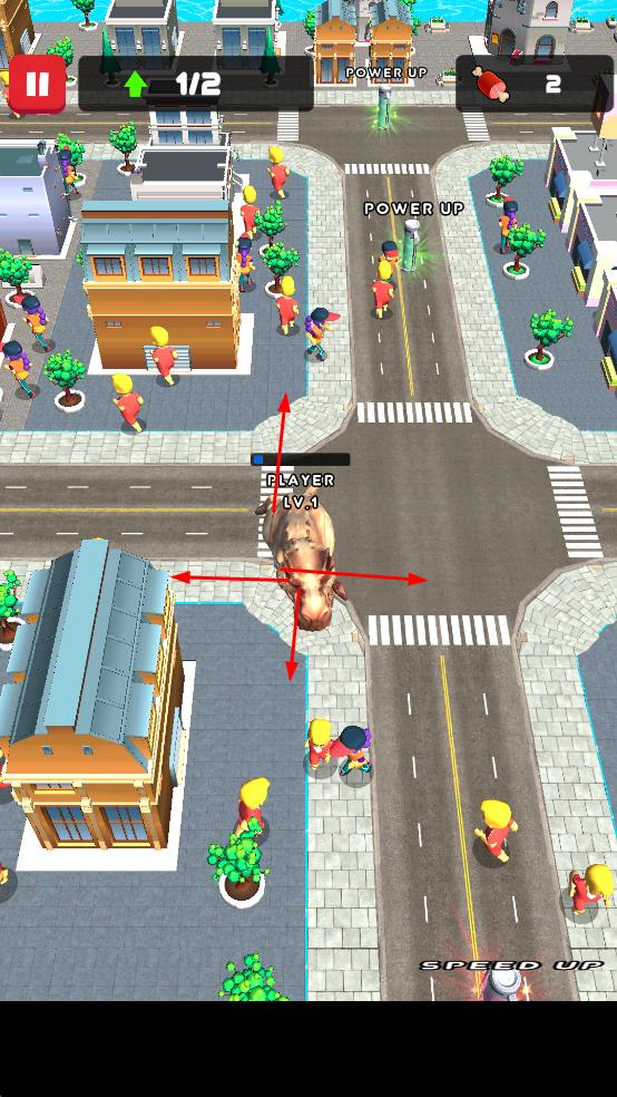 1、操控恐龙角色在城市街道场景中移动,角色可前后左右移动,这是开启游戏的关键操作,顺利开启游戏之旅。