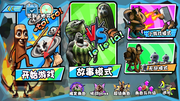 1、进入游戏界面,点击开始游戏按钮,开启游戏的冒险挑战,进入游戏的关卡选择界面。