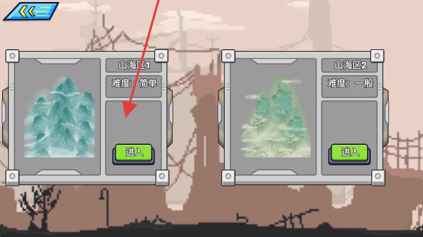 2、在关卡选择界面,选择山海区1关卡,点击进入按钮,进入该关卡进行游戏挑战。