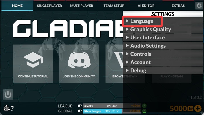 2、然后点击language打开语言界面。