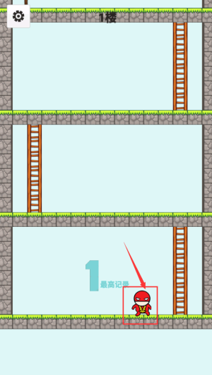 3、控制红框忍者角色,通过木梯攀爬至更高楼层。
