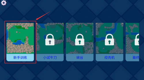 4、选择红框新手训练关卡,点击进入第一关挑战。
