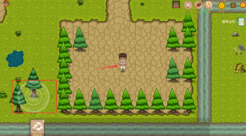 4、控制角色前往红框树木区域,探索隐藏资源点。