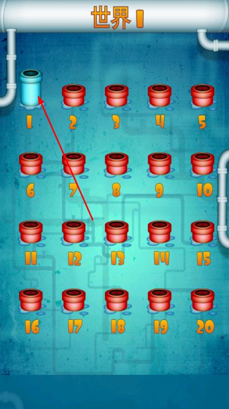 1、进入游戏,在关卡选择界面点击关卡1,开启水管拼接挑战。