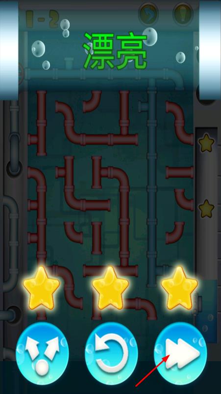 3、成功连接水管,让水流顺利通过,完成关卡后,会根据完成情况获得星级评价,点击箭头按钮进入下一关。