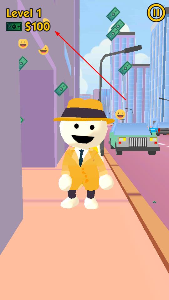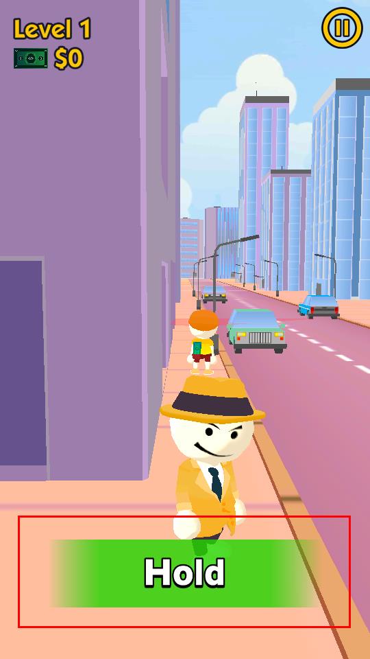 1、进入Level 1的城市街道场景后,点击底部绿色标有Hold的按钮,触发与前方目标角色的互动机制,正式开启夺金挑战流程。