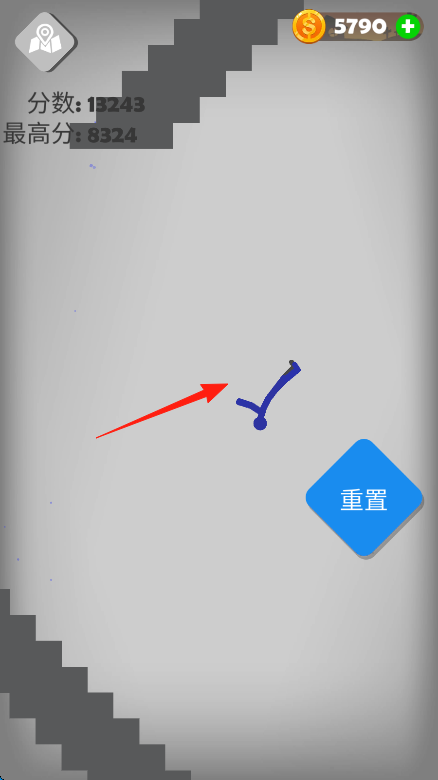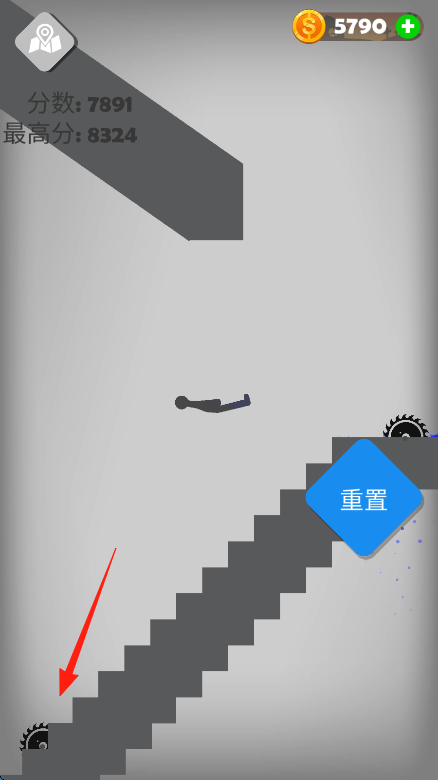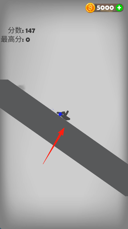 1、操控火柴人,按箭头指引,从斜坡滑下,开始坠落挑战,注意避开障碍物。