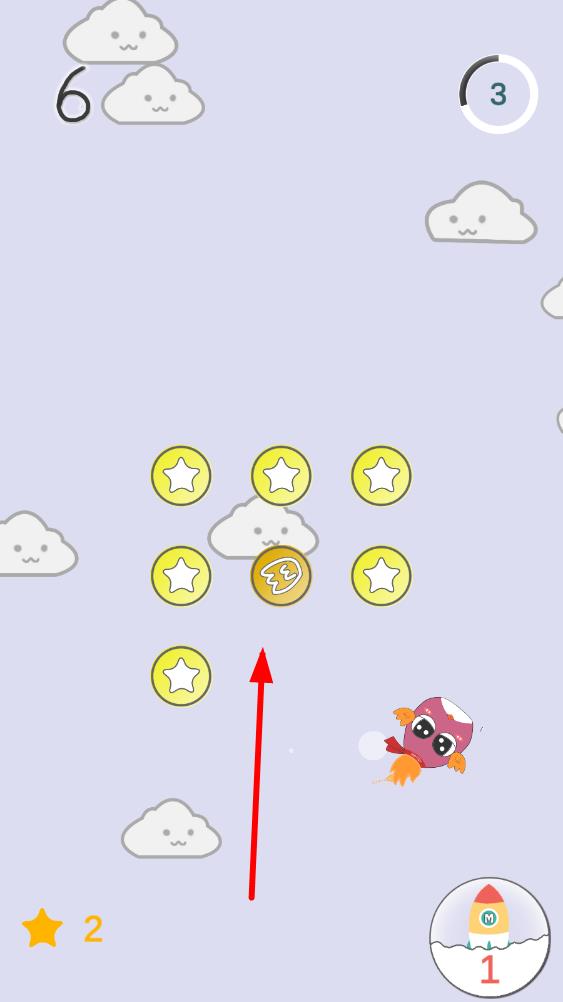1、进入界面,点击图中被红色箭头指向的白色小鸟元素,开始操控小鸟木木起飞,开启飞行挑战。