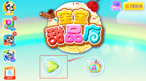 1、点击红框绿色播放按钮,开始宝宝甜品店游戏。