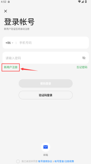 1、点击红框新用户注册按钮,进入手机号注册流程。
