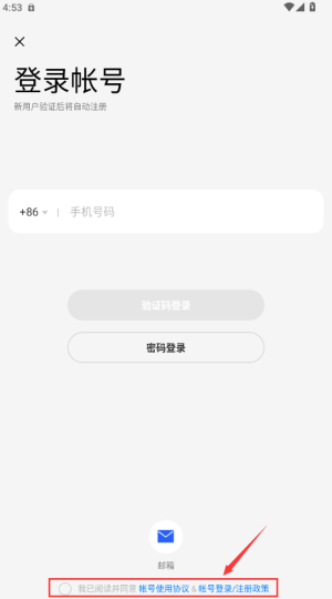 3、勾选红框协议选项,同意条款。