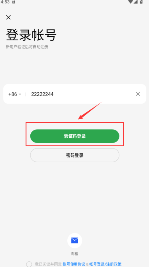 4、点击红框验证码登录按钮,获取短信验证码登录。