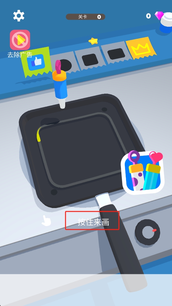 3、关卡解锁挑战:每完成3个基础关卡,会解锁创意关卡,要求画出指定主题图案如笑脸月亮,完成后可收集限定锅具皮肤,丰富创作工具。