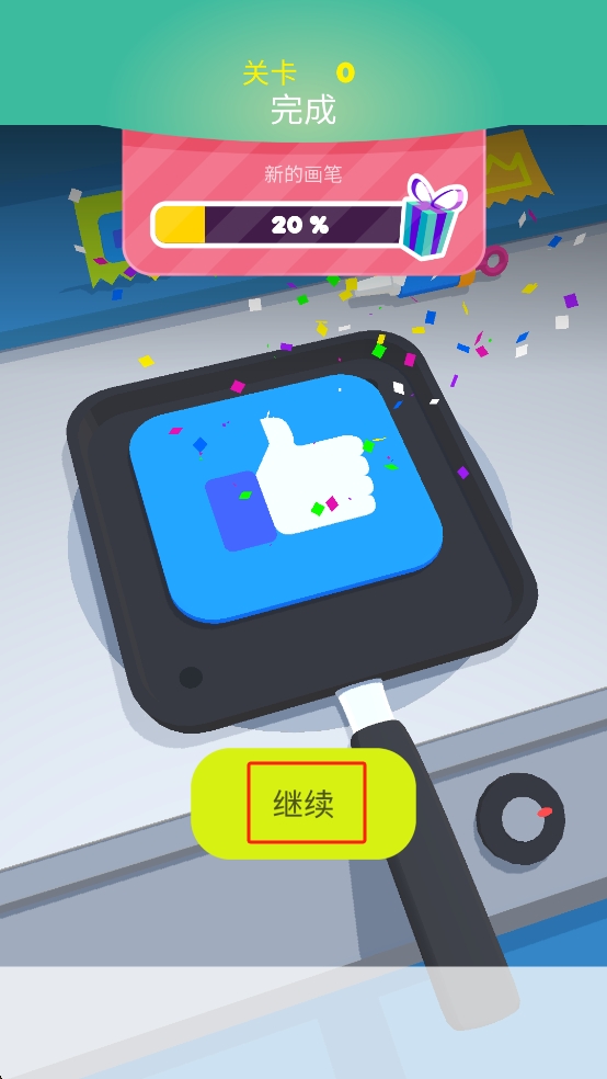 3、图案绘制完成,弹出关卡完成界面,点击屏幕下方的继续按钮,可进入新关卡,解锁新画笔等内容。