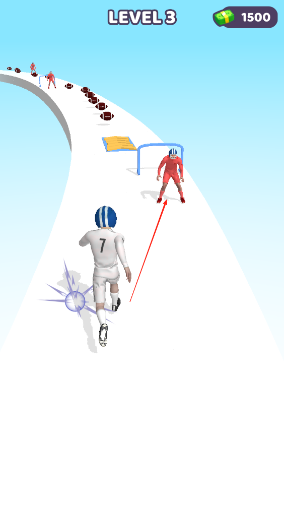 3、球收集奖励机制:赛道上的球可积累兑换球员皮肤和技能升级道具,收集数量越多奖励越丰厚,激励玩家在跑酷过程中兼顾收集与闯关。