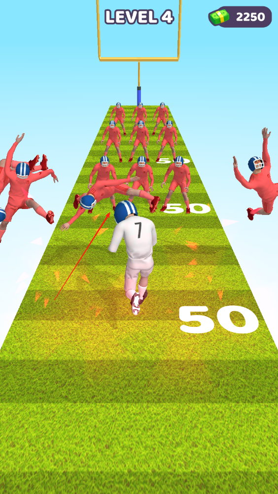 2、到达终点后,球员利用在路上收集到的所有的橄榄球在场上冲刺,冲刺得越远,分数越高。