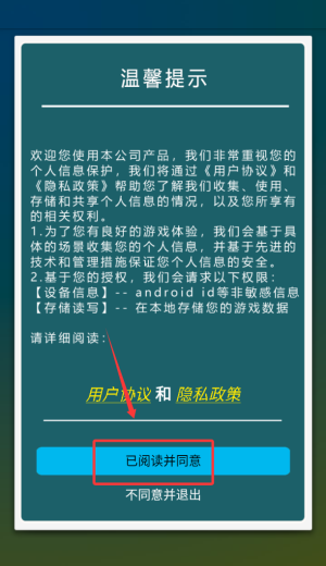 1、首次启动需阅读并确认用户协议,完成验证后即可进入游戏中心界面。