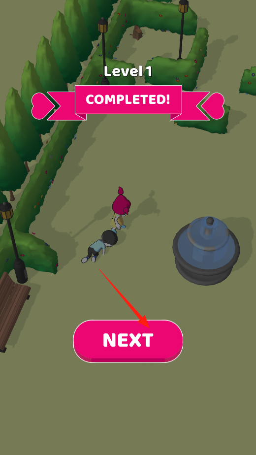 3、完成关卡1后,点击NEXT进入下一关,通过此操作,推进游戏进度,解锁新关卡内容,继续公园互动挑战,体验关卡衔接机制。
