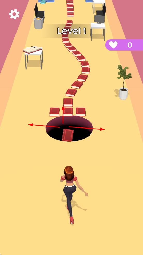 1、控制前进躲避绊倒:操控小女孩在跑酷路线上前进,留意沿途可能绊倒她的物品,及时通过滑动让黑洞吸走,确保前行过程不被中断,保持顺畅的跑酷节奏。
