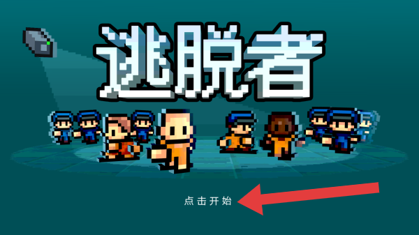1、画面有逃脱者标题,点击开始的按钮用于进入游戏,呈现出囚犯与狱警角色形象,是经典的监狱逃脱题材模拟。