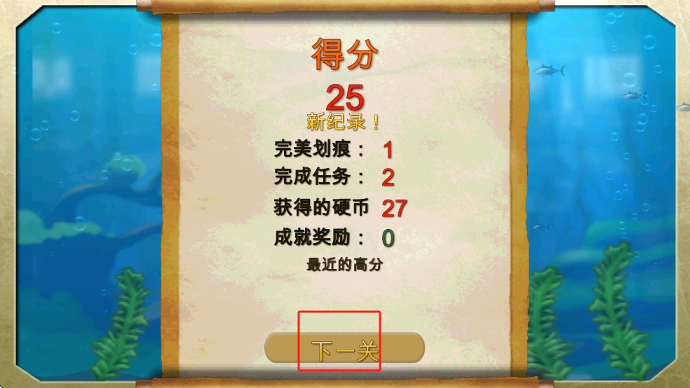 3、得分结算后,点击下一关按钮,进入后续关卡,借鉴经验应对更复杂的寿司飘落规律与种类。
