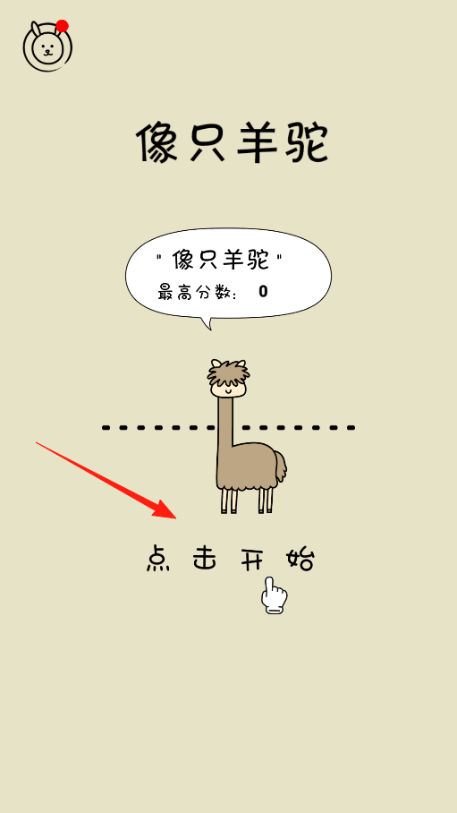 1、在像只羊驼初始界面点击点击开始,进入游戏关卡,通过此操作开启羊驼主题的挑战,准备操控羊驼躲避障碍,体验游戏开场流程。