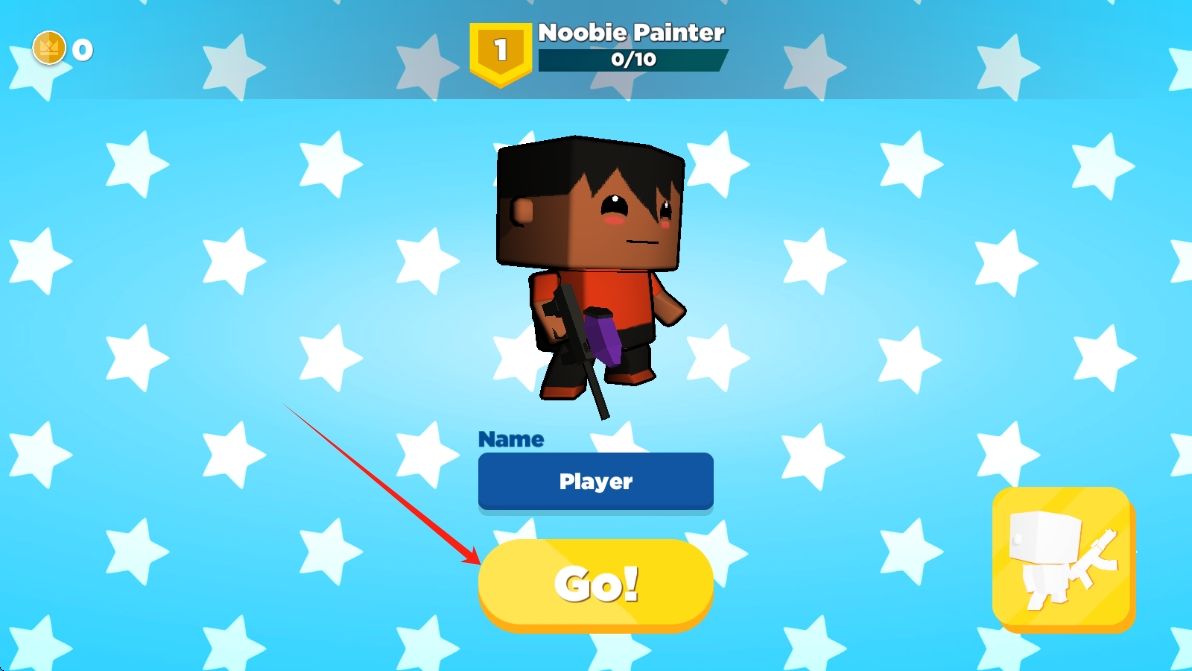 1、在游戏启动界面,跟随箭头提示,点击Go!,开启射击对战冒险,进入游戏世界。